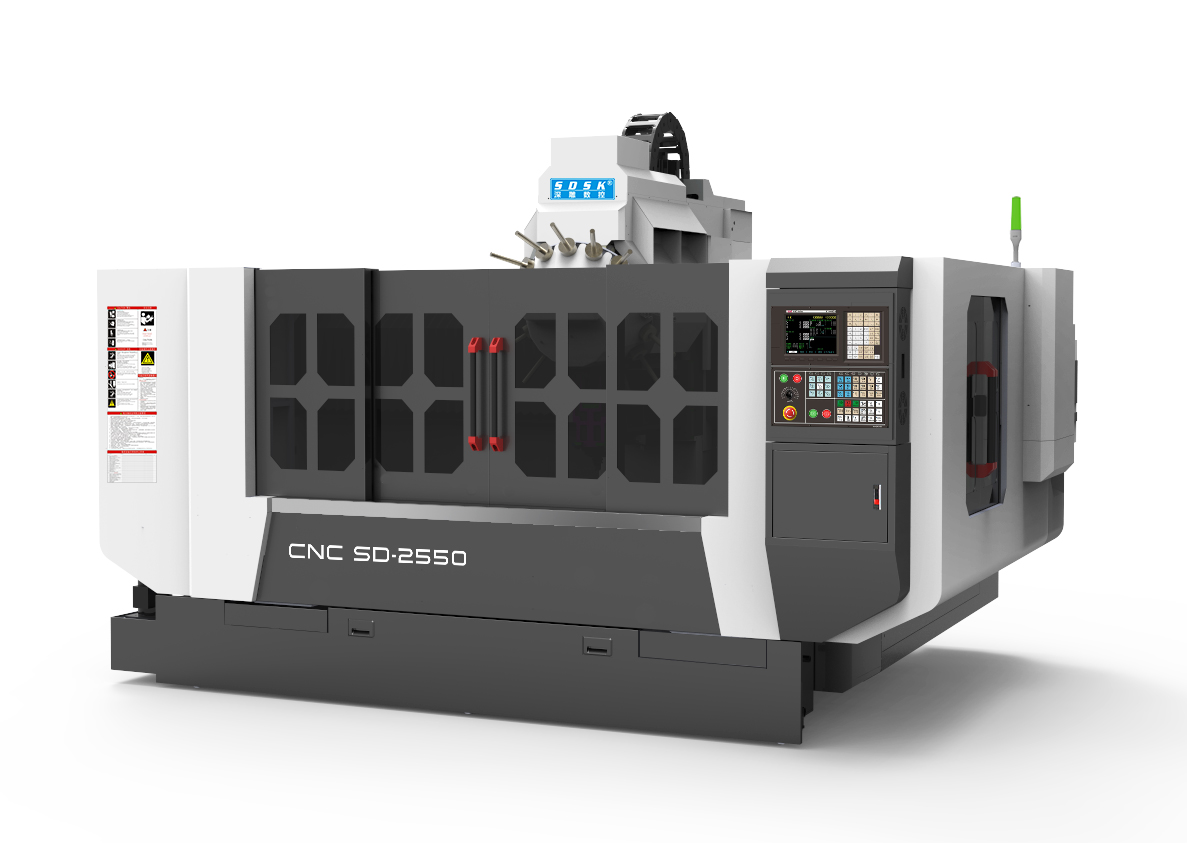 The SD model series is a large aluminum profile processing center specially designed for customers; Equipped with Taiwan Shengjie 16 bit UFO style tool library, the tool changing speed is 2 seconds, greatly improving production efficiency; The motion mode is to move the Y-axis workbench forward and backward, the X-axis machine head moves left and right, and the Z-axis spindle moves up and down. Body cast iron structure; Adopting deep carving CNC system and servo motor; The three-axis adopts Shangyin/Yintai precision linear guide, precision ball screw, German coupling, advanced spindle refrigeration system, automatic lubrication system, coolant circulating water spray and spray system, ensuring higher processing accuracy, speed and stability;; Especially suitable for precision engraving, milling, drilling, and tapping of various types of steel, copper, aluminum, acrylic, plastic and other parts< Br/>