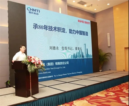 Liu Deyong, Secretary of the Party Committee and Chairman of Chongqing Machine Tool Group, delivered a technical exchange report at the conference
