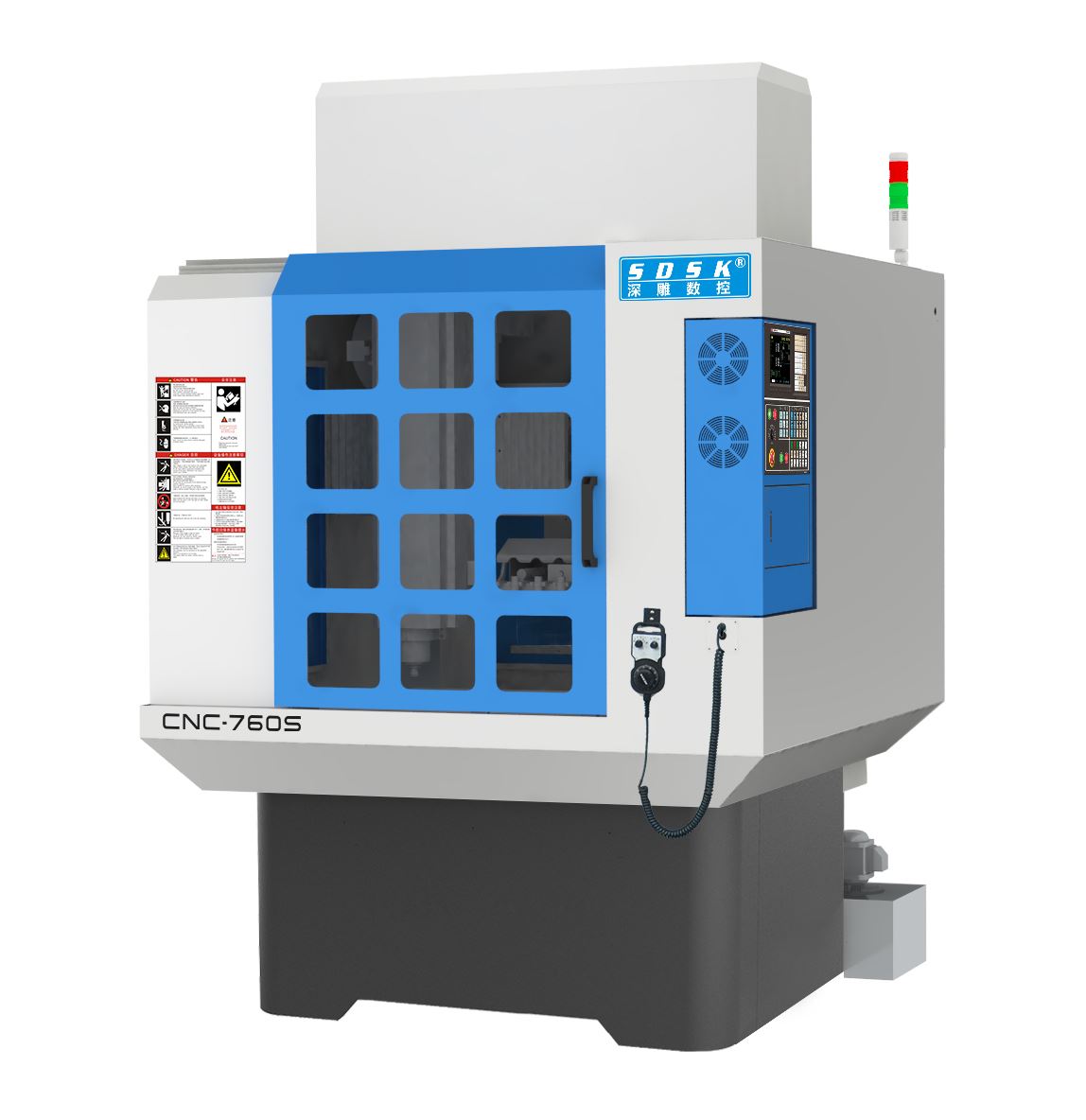 The SDSK760S model is a small precision carving machine specially designed for customers; Equipped with a 4-position straight row tool magazine; The movement mode is to move the Y-axis workbench forward and backward, the X-axis to move left and right, and the Z-axis to move up and down. The Weihong CNC system adopts a simple operation interface; Huichuan servo motor, with a top grade granite (marble) structure on the body that never deforms; The three-axis adopts imported Taiwan Shangyin precision linear guide rail, grinding grade ball screw, German coupling, distribution cabinet constant temperature system, advanced spindle refrigeration system, automatic lubrication system, coolant circulation water spray system, air filtration device, ensuring higher processing accuracy, speed and stability; Especially suitable for precision edge grinding, cutting, punching, polishing and other processing of various types of glass, quartz glass, ceramics, jade, sapphire and other parts< Br/>